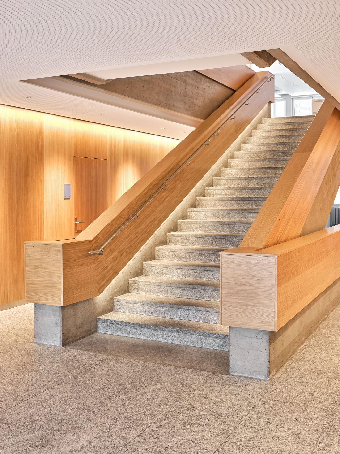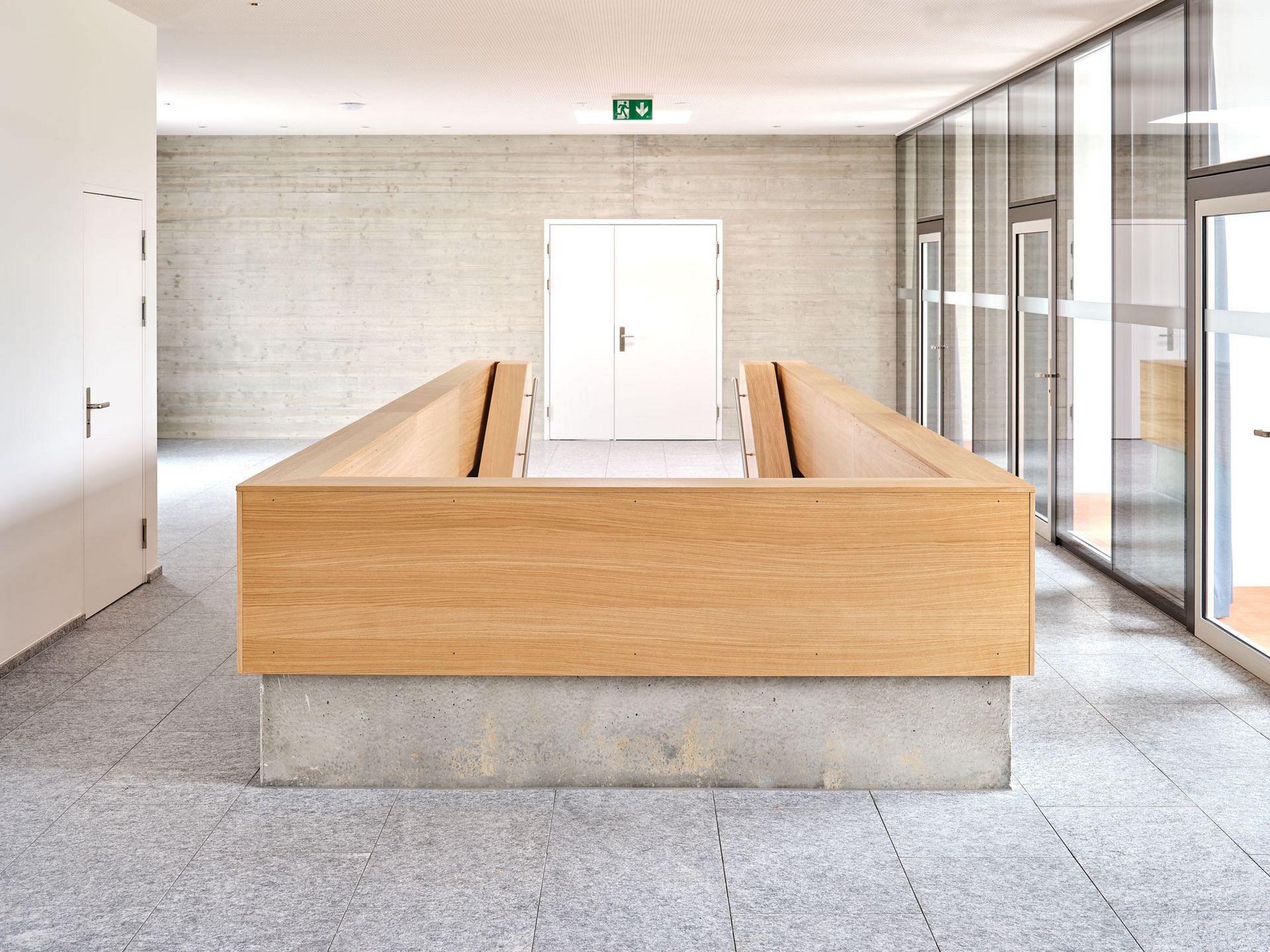 Durch den konsequenten Einsatz von Eiche Furnier entstand ein zeitgemässes Verwaltungsgebäude, das Funktionalität, architektonische Klarheit und eine warme, natürliche Ausstrahlung vereint.