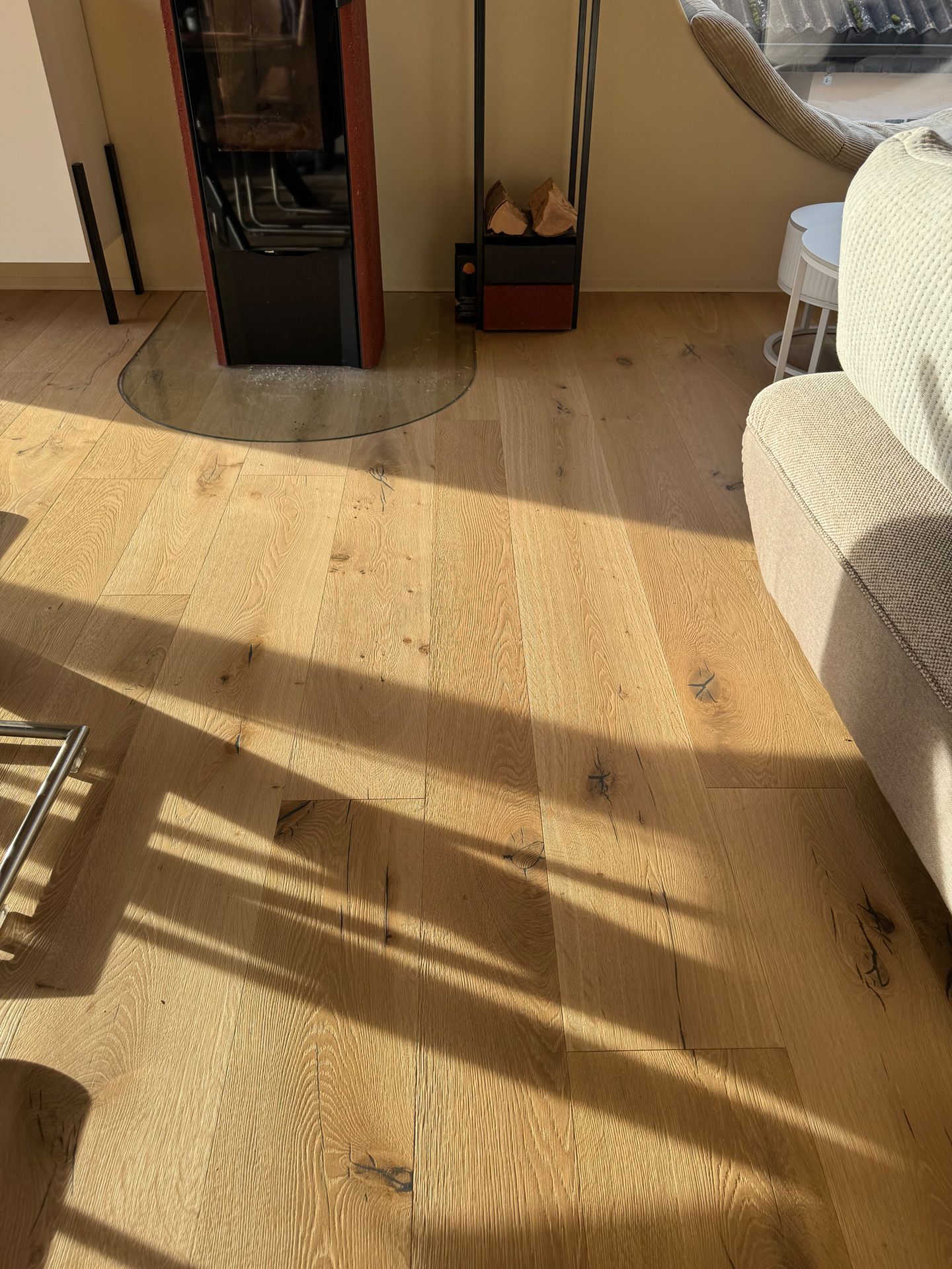 Besonders hervorzuheben ist das eingesetzte Fliri Landhausparkett aus Eiche, naturgeölt und in rustikaler Sortierung. Das Parkett wird in Handarbeit gefertigt und individuell auf Wunsch hergestellt – ein deutlicher Qualitätsunterschied zu standardisierten Produkten aus dem Baumarkt. Auch bei den Holzwerkstoffen und Plattenmaterialien setzte der Kunde auf professionelle Qualität, die Langlebigkeit und Verarbeitungsfreundlichkeit garantiert.