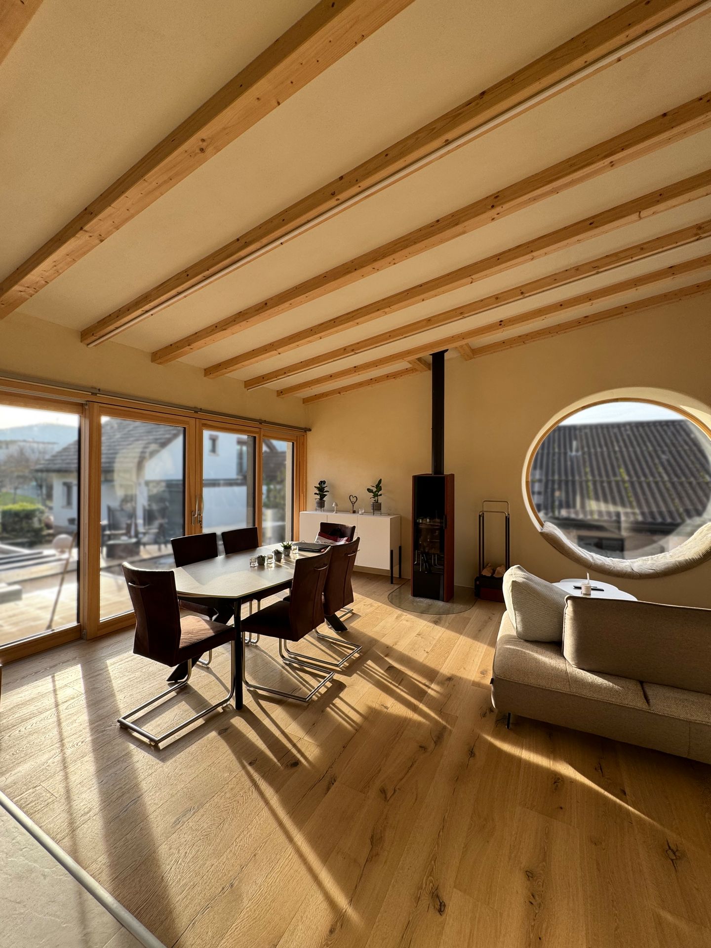 Der Bauherr bezog sämtliche Materialien für den Umbau direkt über die Roser AG – von handgefertigtem Parkett aus Schweizer Manufaktur bis hin zu hochwertigen Innentüren. Dank der umfassenden Beratung, präzisen Planung und sorgfältigen Bemusterung konnte der Kunde die Türen sogar selbst montieren.