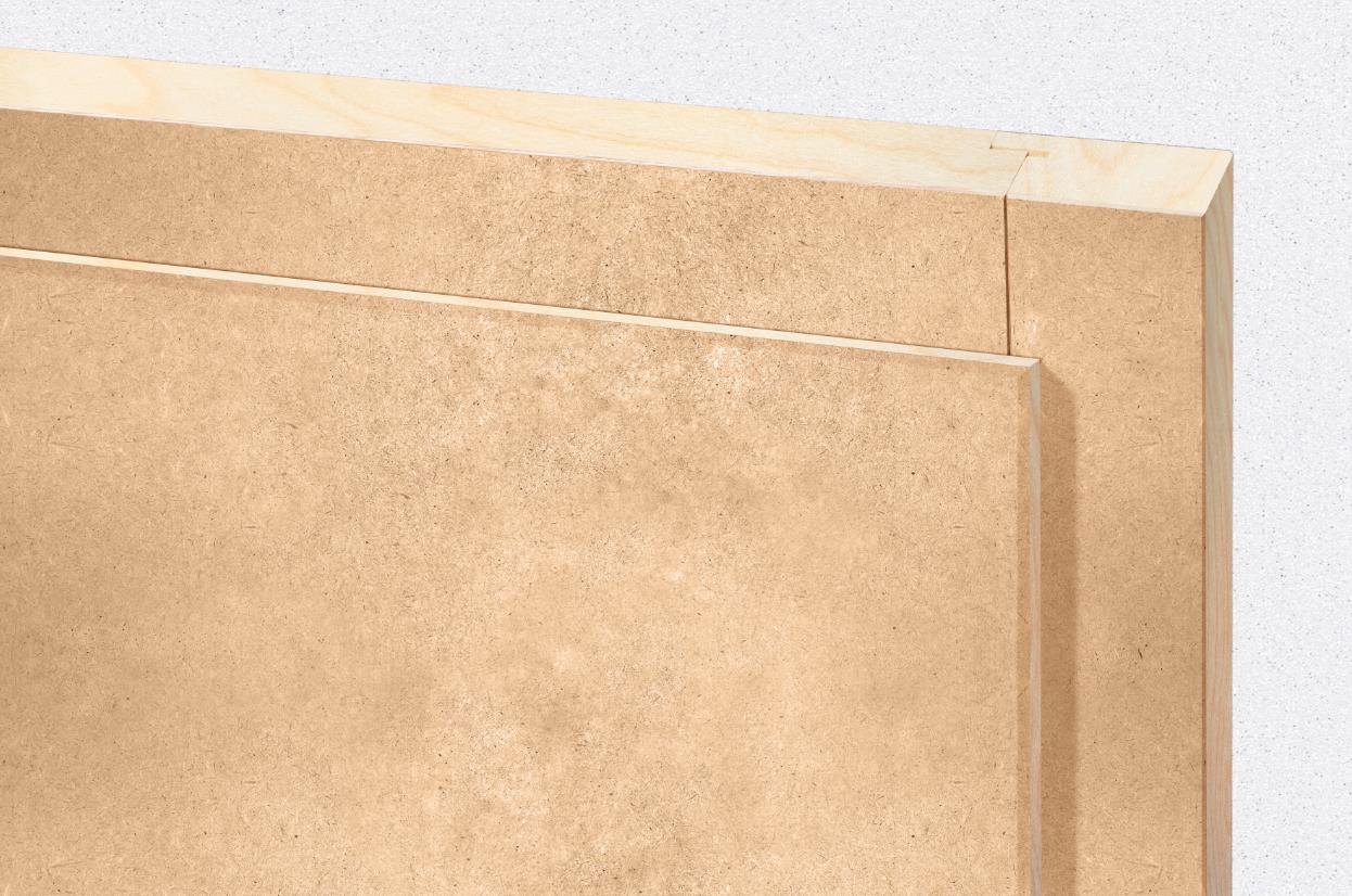 Rahmentyp Cadra 4A, Birke HDF 51/90 mm, roh zum Streichen, ohne Schwelle, 3-seitig Falzdichtung schwarz, 2 Stk. Rahmenbandteile HE 18/100 mit Gewindehülse, Edelstahl-Schliessblech (ähnlich Glutz 1151).