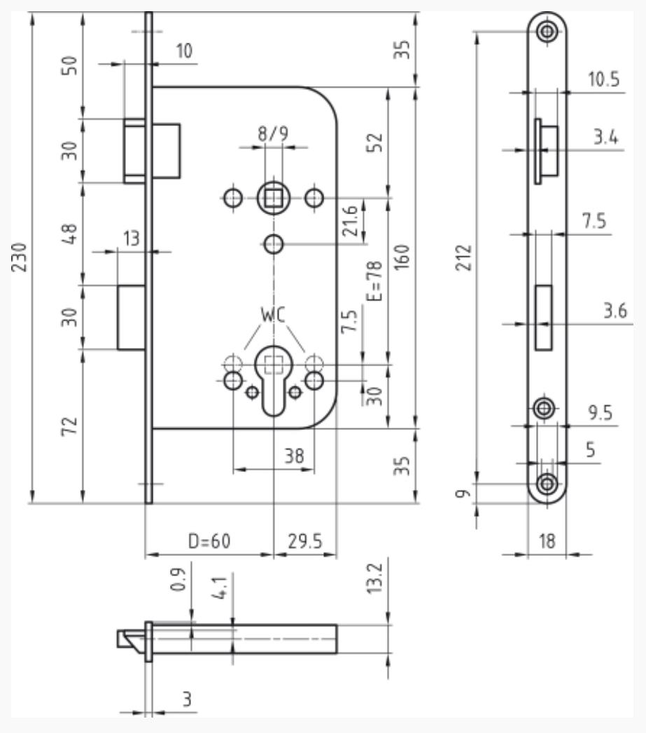 Glutz Einsteckschloss 1106.6 Rundstulp 18 mm, Dornmass 60 mm DIN - Links RZ mit Wechsel