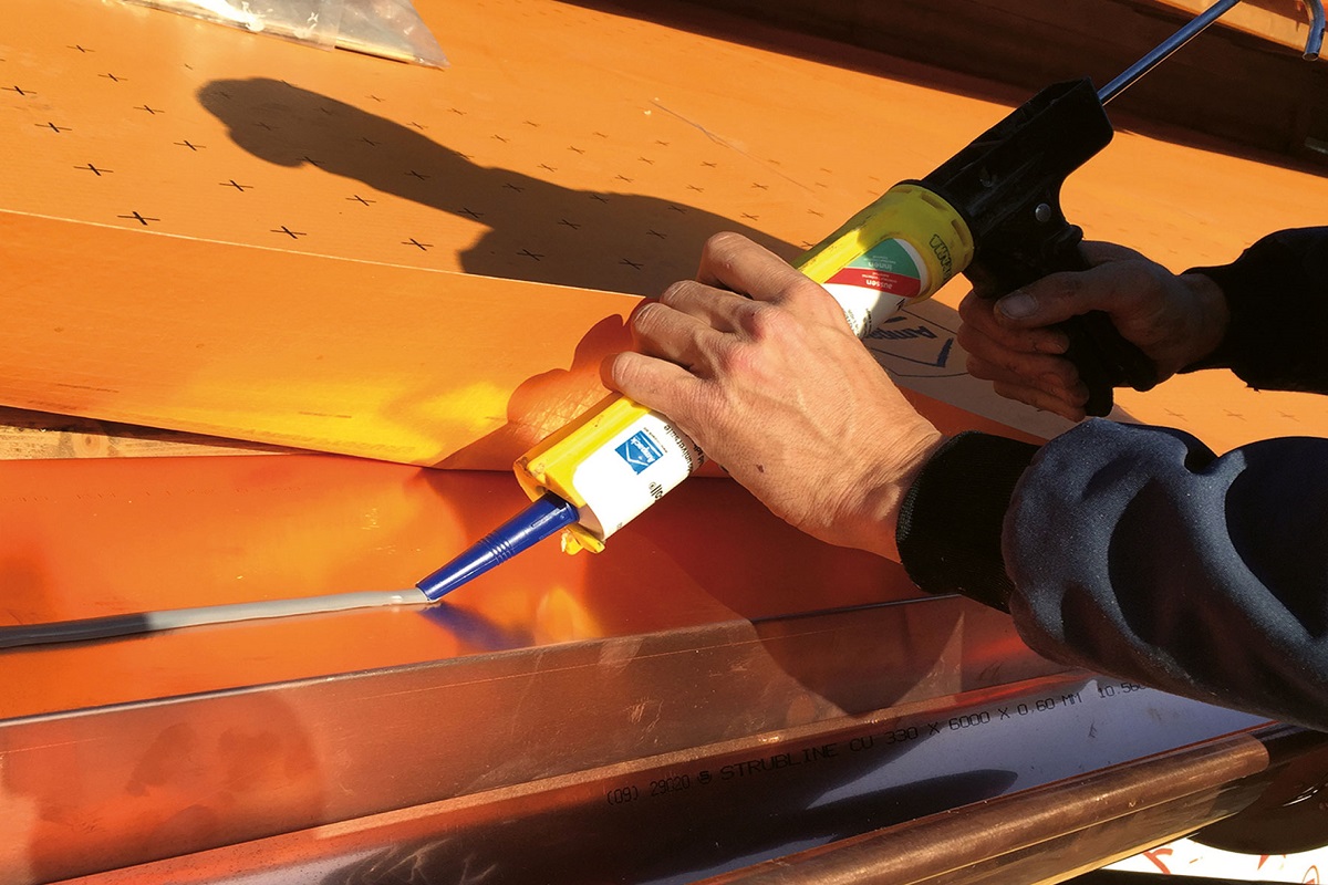 Lösemittelfreier, luft- und winddichter, dauerhaft elastischer Flüssigklebstoff.