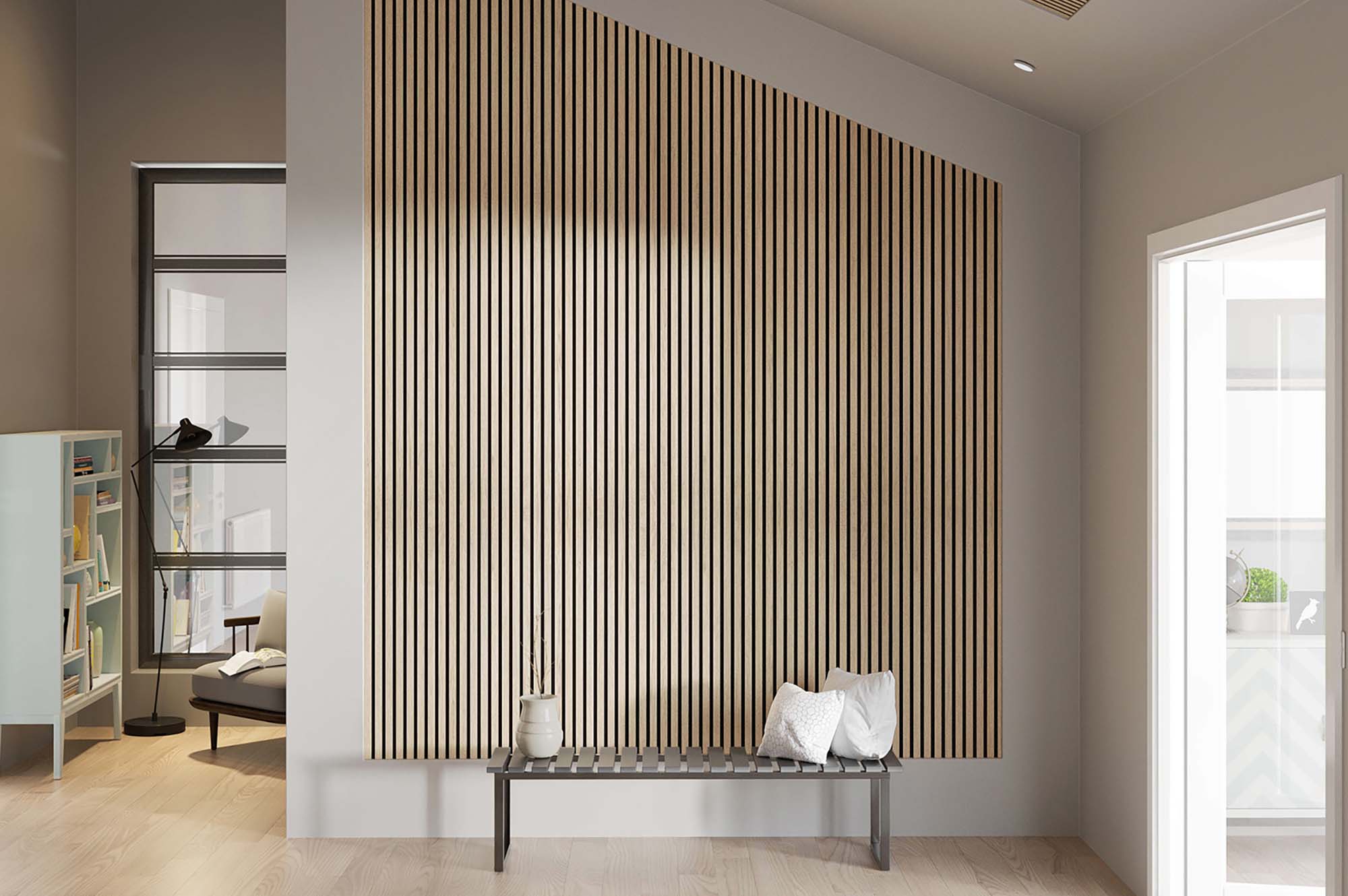 Akustik-Paneel in Eiche schlicht Oberfläche geschliffen (Vlies & MDF schwarz)